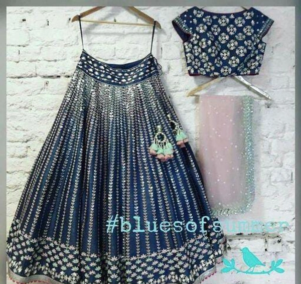 Blue Color Dulhan Lehenga Choli, Wedding Lehenga Choli, Party Wear Dress Embroidered Attractive Party Wear Silk Lehenga choli has a Regular-fit and is Made From High-Grade Fabrics And Yarn.