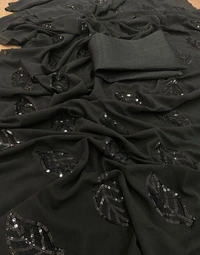 SAREE FABRIC : Heavy Georgette 60 gram ,WORK : Beautiful heavy multy with black sequence work , SAREE CUT : 5.5 MTR, BLOUSE : Pure satin silk with 0.80 mtr (unstitch)