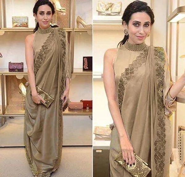 VICHITRA SILK SIQUENCE CHIKU SAREE WITH SEPARATE BLOUSE